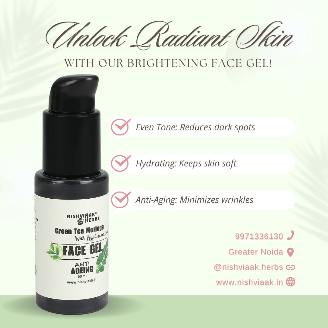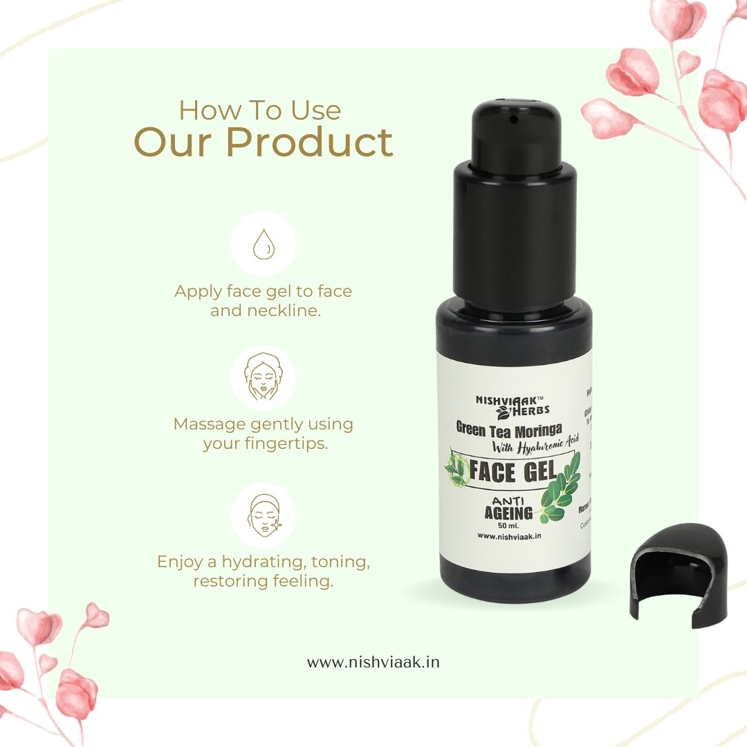 Elevate your skincare routine with the refreshing touch of Green Tea and Moringa Face Gel—where nature meets luxury for a glowing, healthy complexion.