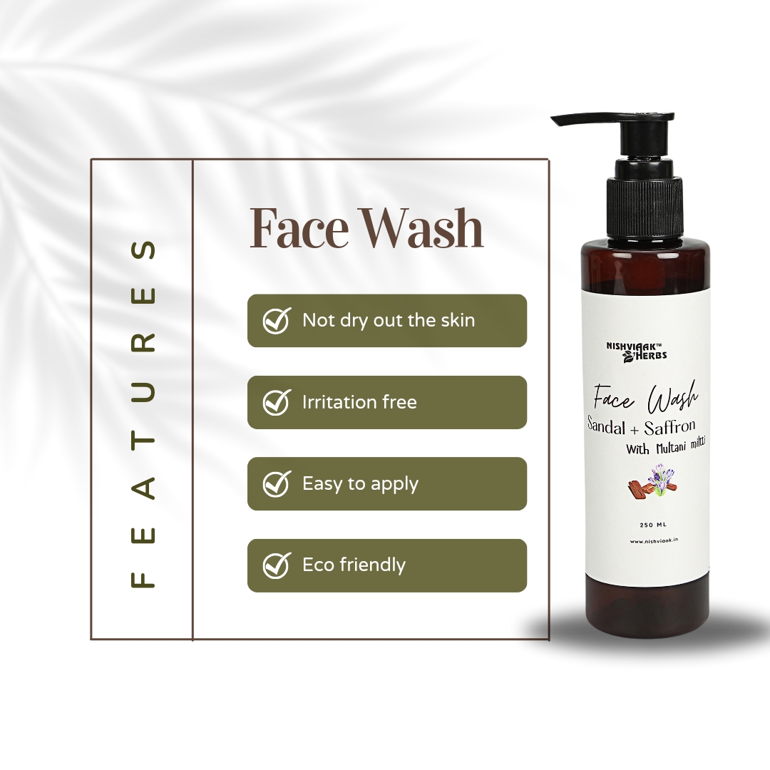 Indulge in the luxurious blend of sandalwood, saffron, and multani mitti with our rejuvenating face wash. This formula combines the purifying properties of multani mitti with the brightening benefits of sandalwood and saffron to cleanse, exfoliate, and revitalize your skin. Experience a deep cleanse that leaves your skin feeling refreshed, radiant, and rejuvenated.
